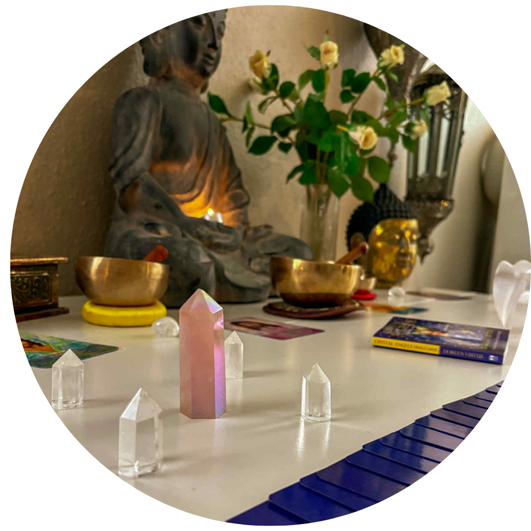 Vi varvar meditationer, helande övningar och initieringar med reflektion, frågor och delning i en liten och trygg grupp.